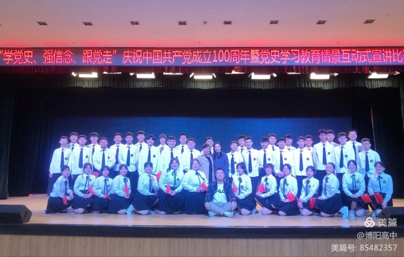 为隆重庆祝中国共产党成立100周年,深入学习贯彻习近平总书记在党史学习教育动员大会上的重要讲话精神,中共丹东市委宣传部、中共丹东市委组织部、中共丹东市直属机关工作委员会、共青团丹东市委员会联合开展“学党史、强信念、跟党走”为主题的庆祝中国共产党成立100周年暨党史学习教育情景互动式宣讲比赛,围绕党史教育活动内容,强化团员青年对党史知识的深刻认识,增强团员青年的责任感和使命感,以新时代青年昂扬的精神面貌和干事创业的热情,奋力开创“十四五”新篇章,以优异成绩向党的百年华诞献礼。博阳学子过五关斩六将,分获区赛二等奖,市赛三等奖的优异成绩。